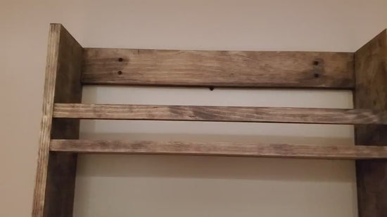 Note: These photographs are all from customers, and provide a portrayal of what will be manufactured for you upon your order. Because this is a customer picture, colors may not be accurate. Every piece of wood that we use will be unique, so it is expected that the knots, the wood grain, and the way the wood absorbed the stain will vary from each piece.