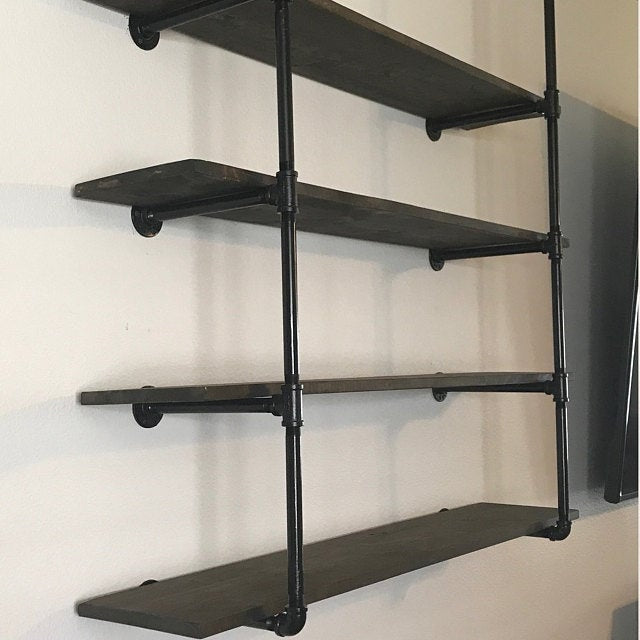 This unique shelving unit is sure to catch the eye to how it’s designed. This modern piece hangs from the ceiling rather than standing from the ground up and frees space right below the shelving unit to tuck away any baskets, tables, or foot stools. Not only is this piece of furniture creative and beautiful, it’s also practical!