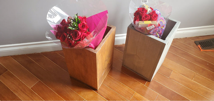 The unfinished option is a Wooden Floor Vase that is not stained and not refined like our other stain options. This means that there could be wood filler not sanded done all the way, glue residue, and less sanding than a regularly stained Wooden Floor Vase. This option is meant for you to finish off the waste-bin how you wish for it to be finished off or just keep it natural.