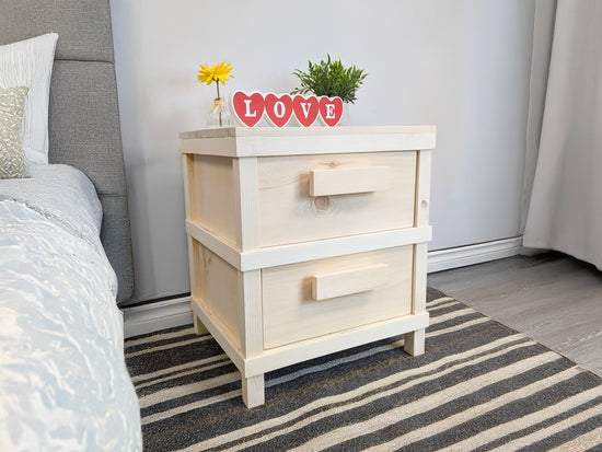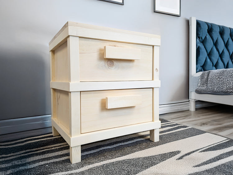 Handmade Solid Wood 2-Drawer Nightstand – Customizable